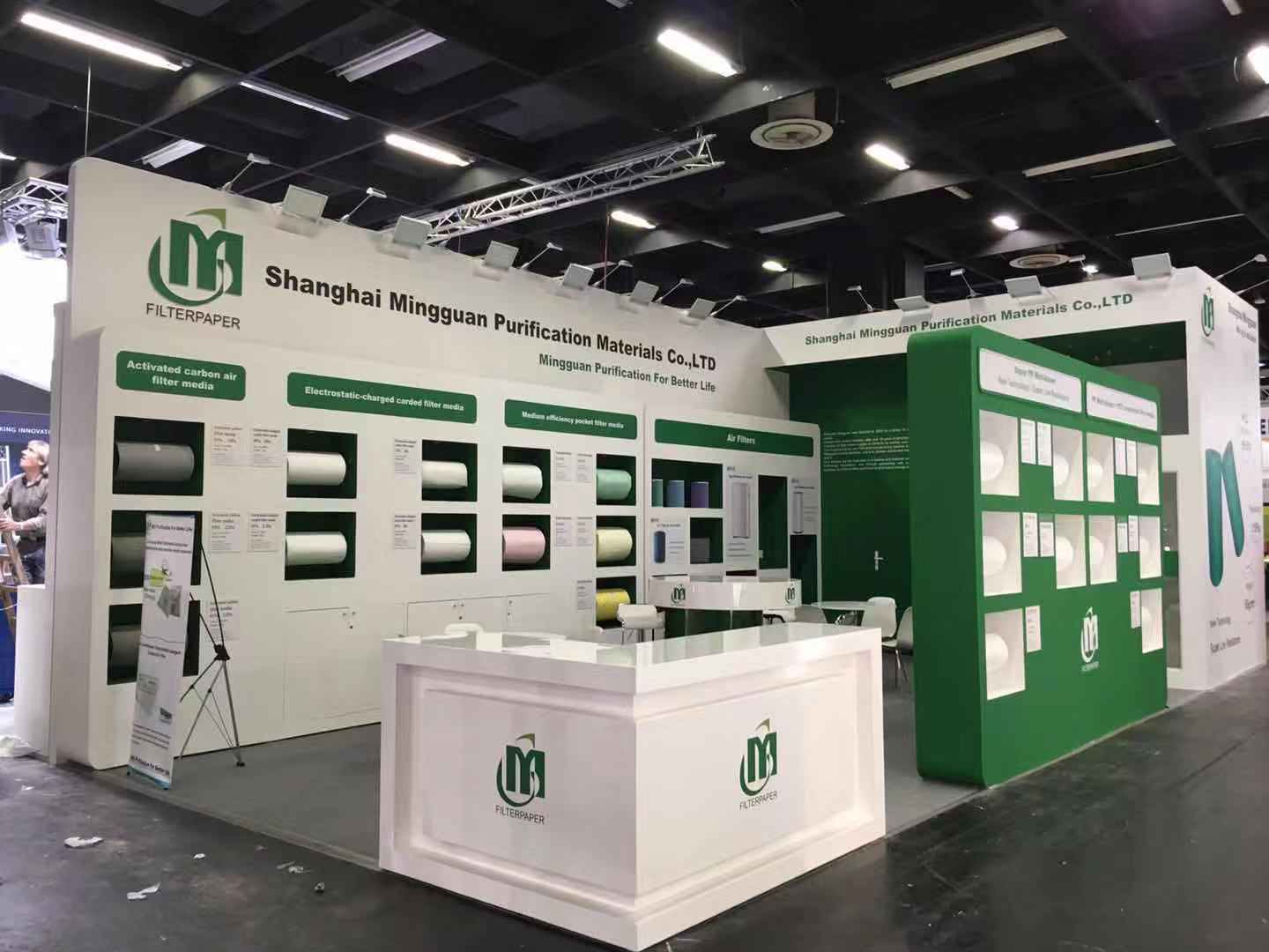 We exhibited self-produced PP melt blown materials, HEPA melt blown composite filter materials, activated carbon filter media, medium efficiency pocket filter media, etc
